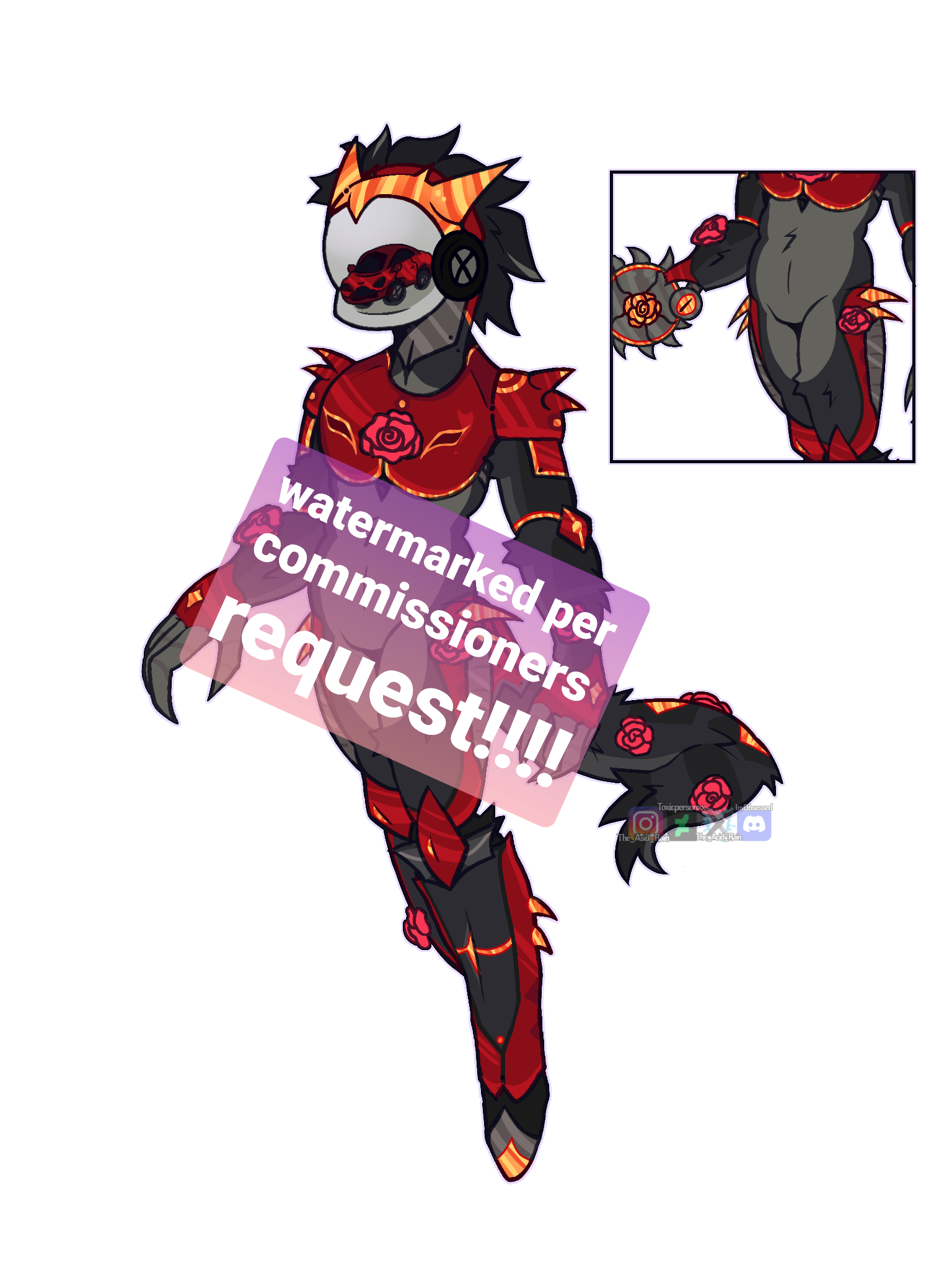 You may not use my art as advertisement or merch, UNLESS agreed upon (this will cost $) [this can be asked anytime]